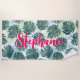 Monstera Leaf Tropical Palm Hot Pink Script Name Strandtuch