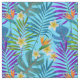 Farbenfrohe tropische Blätter von Palmen, Monstera, Plumeria Blume und Paradiesvögel auf himmelblauen Hintergrund. Sie können die Hintergrundfarbe ändern, indem Sie auf den Knopf "Anpassen!" klicken. Beachte! Dort können Sie auch die Kachelgrößen ändern, um die Größe eines zeichnend Kachels anzupassen.