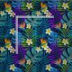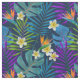 Farbenfrohe tropische Blätter von Palmen, Monstera, Plumeria Blume und Paradiesvögel auf marineblauem Hintergrund. Sie können die Hintergrundfarbe ändern, indem Sie auf den Knopf "Anpassen!" klicken. Beachte! Dort können Sie auch die Kachelgrößen ändern, um die Größe eines zeichnend Kachels anzupassen.
