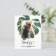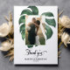 Monstera Tropical Leaf Wedding Dankeschön Card Mit unserer preiswerten Wedding Dankeschön Card Ihr Foto, Monstera Blatt und Ihr wunderschön gefertigter Kalligraphie-Schriftart mit Eleganz und Charme ausdrücken. Mit Sorgfalt erstellt, bietet diese Dankeschön-Karte einen herzlichen Weg, Ihre Lieben zu schätzen. Die Aufnahme Ihres Hochzeitsstils bringt eine persönliche Touch mit sich, die es Ihnen ermöglicht, eine wertvolle Erinnerung an Ihren besonderen Tag zu teilen. Der Kalligraphie-Schriftart fügt Ihrer Dankesbotschaft eine Touch von Raffinesse und Verfeinerung hinzu. Die zarten Kurven und die anmutigen Linien vermitteln Wärme und Aufrichtigkeit, sodass jede Karte ein wahrhaft herzliches Gefühl hat. Falls Sie eine Anpassung benötigen, können Sie sich jederzeit an den Shop wenden