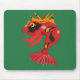 Das Design zeigt einen frech aussehenden Monsterfisch in Rot- und Orangetönen. Es befindet sich auf einem grünen Hintergrund. Sie können die Farbe des Hintergrunds ganz einfach ändern und eine Ihrer eigenen Vorlieben auswählen.