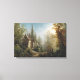 Dieses Design zeigt ein Gemälde des österreichischen Künstlers Albert Rieger (1834-1905). Es zeigt ein elegantes kirchliches Gebäude in ländlicher Umgebung mit hohen Bäumen und grünem Laub. Zwei Männer reiten Pferde über eine Brücke über einen Fluss. Die helle Sonne geht auf, während der Abend zeichne.