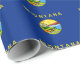Innerhalb des Siegels, eines Pflugs, der Schaufel und der AuswahlErholung auf einem Gebiet vor den großen Fällen des Missouris. Das Band enthält das Staatsmotto, Oro y plata (spanisch für "Gold und Silber"). Die gegenwärtige Flagge wurde im Jahre 1905 adoptiert, und das Wort "Montana" über dem Siegel wurde im Jahre 1981 addiert. Im Jahre 1985 wurde die Flagge wieder geändert, um den Schriftart zu spezifizieren, der in "Montana verwendet wurde: " Helveticamutiges. Bevor sie als Staatsflagge adoptiert wurde, wurde sie von Montana-Truppen verwendet, die für den spanischen/amerikanischen Krieg entfalten.