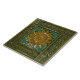 Die Minton-Fliesen wurden als eine der feinsten im späten neunzehnten und frühen zwanzigsten Jahrhundert produziert. Diese dreifarbige Majolika-Design verfügt über eine goldene Sonnenblume auf einem aquamarinen Hintergrund gerahmt von Oliven-grüne Streifen mit einem Blatt Design. Die Sonnenblume war ein beliebtes Motiv während der Handwerksbewegung des späten 19. und frühen 20. Jahrhunderts.