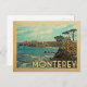 Monterey California Design im Vintage Travel Stil mit einer Szene an der Küste mit dem Pazifischen Ozean und landschaftlichen felsigen Ufer von Kalifornien.