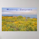 Ein lebendiges Gelbfeld erstreckt sich bis zum Horizont und schafft einen atemberaubenden Kontrast zum blauen Ozean und wolkigen Himmel auf der Halbinsel Monterey, Kalifornien. Die Blume sind in voller Blüte, ihre hellgelben Blütenblätter schaffen ein farbenfrohes Meer. Die Küste ist im Hintergrund sichtbar, mit Felsvorsprüngen und sanften Wellen des Ozeans.