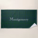 Stilvolles Strandtuch im klassisch blauen und grünen schottischen Clan Montgomery tartan karierten Muster. Personalisieren Sie den großen weißen Text in der Mitte, um Ihre Bedürfnisse zu Anzug.