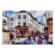 Ein beeindruckendes Gemälde von der Rue Norwegen in Montmartre, Paris. Man kann dort eine lebhafte städtische Szene sehen, mit weißen Gebäuden, die für das Viertel charakteristisch sind, darunter ein Café oder Restaurant mit einer roten Markise. Auf der Straße wandern Passanten herum, die eine lebendige und typische Atmosphäre für diese historische Nachbarschaft schaffen. In der Ferne ist die Kuppel des Heiligen Herzens zu sehen, der symbolträchtige Ort von Montmartre. Das Ganze wird mit sanften Tasten behandelt, die dieser Pariser Szene einen inspirierenden und nostalgischen Aspekt verleihen.