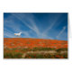 Monty das Lipizzan, das über ein Feld der orange Mohnblumen galoppiert.