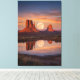 This stunning canvas print captures a breathtaking desert landscape inspired by Monument Valley at dusk, where iconic red sandstone buttes rise beneath a glowing supermoon. The moon appears low on the horizon, perfectly reflected in calm water, creating a powerful mirror effect that brings balance, depth, and serenity to the scene.