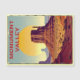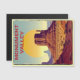 Magnetische Postkarte, die Monument Valley in den Bundesstaaten Utah und Arizona in den Vereinigten Staaten repräsentiert. Bemerkenswert ist die geomorphologische Formation, die unter anderem aus Mesas und Zeugen besteht. Das Gebiet ist Teil eines Reservats der Navajos und des Colorado Plateau.