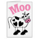Adorable Abbildung einer schwarz-weißen Kuh mit dem Wort "Moo" in rosa über ihm. Seine Flecken sind Herz. Ideal für alle, die Kuhartikel sammeln!