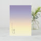 Der Hintergrund für alle Stücke in diesem minimalistischen Hochzeitsfest Set ist ein auffälliger Farbverlauf von indigo durch pfirsichgelb und schmackhaft gelb. Die Hochzeitskarte "Save the Date", die hier gezeigt wird, zeichnet sich durch ein elegantes, modernes Design und einen zeitgenössischen serifenlosen Schriftart aus, der die schlichte Eleganz noch verstärkt. Fügen Sie einfach Ihre Namen und das Hochzeitstermin mit der bereitgestellten Vorlage hinzu. Durchsuchen Sie ID741 um das komplette Set von passenden Produkten in Indigo Sunset zu sehen oder wählen Sie eine der anderen verfügbaren Farbverlaufskombinationen, um Ihre Hochzeitsfarbenpalette Anzug zu geben.
