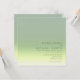 Der Hintergrund für alle Stücke in diesem minimalistischen Set ist ein auffälliger Farbverlauf von sanftem Salbeigrün über schmackhaftes Gelb bis Elfenbein. Die hier gezeigte Hochzeitseinladung zeichnet sich durch ein elegantes, modernes Layout und einen zeitgemäßen serifenlosen Schriftart aus, der den Charme dieses Ortes noch verstärkt. Fügen Sie einfach Ihre Ereignisdetails mithilfe der bereitgestellten Vorlage hinzu. Durchsuchen Sie ID741 um das komplette Set von passenden Produkten in Spring Meadow zu sehen oder wählen Sie eine der anderen verfügbaren Farbverlaufskombinationen, um Ihre Hochzeitsfarbenpalette Anzug zu geben.