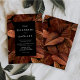 Diese moderne botanische Einladung besticht durch einen dunklen, launischen Hintergrund der Herbstblätter in Rosttönen. Personalisieren Sie es mit den Namen der Braut und Bräutigam und anderen Hochzeitsdetails in weiß auf einem schwarzen Rechteck. Auf der Kartenrückseite wird das Rostbild der Blätter wiederholt. Ideal für eine Hochzeit im Herbst!
