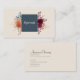 Define your brand with dramatic color and high-end contrast using this captivating business card. The design is centered against a soft, creamy off-white background, which beautifully showcases the symmetrical, jewel-toned floral arrangements. These stylized clusters feature a striking color block design: lush burnt orange and coral pink roses anchor the left, contrasted by deep burgundy and rich crimson roses on the right. Dark blue and autumnal gold foliage connects the elements, emphasizing the rich, moody palette. A bold solid dark navy blue square provides a strong, modern geometric frame for your key information. This aesthetic perfectly blends romantic, deep-toned florals with modern, clean structure, resulting in a unique and sophisticated brand statement that conveys rich drama and refined style. This business card is ideally suited for a high-end event stylist specializing in moody or autumnal celebrations, a boutique candle maker whose products evoke complex, autumnal scents, or a modern interior designer who favors deep, jewel-toned color palettes. It would also perfectly suit a floral designer known for high-contrast arrangements, or a vintage fashion boutique owner promoting an exclusive seasonal collection. The card's captivating blend of dark florals and geometric framing ensures it is versatile for any solemn ceremony, corporate announcement, or refined birthday announcement.