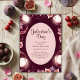 Celebrate your favorite ladies with a chic, wine-night vibe. This design features a moody berry background with watercolor figs, grape leaves, and glowing wine glasses framing a soft blush oval for your party details. Elegant scripts and clean type keep everything easy to read and ultra-feminine.
