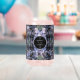 A bold and sophisticated Can Glass featuring dramatic dusty blue and grey floral illustrations against a stark black background. The crisp white typography and classic layout set an elegant, moody tone. Perfect for a formal evening or a sophisticated wedding.