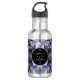 A bold and sophisticated stainless steel water bottle featuring dramatic dusty blue and grey floral illustrations against a stark black background. The crisp white typography and classic layout set an elegant, moody tone. Perfect for a formal evening or a sophisticated wedding.