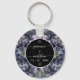 A bold and sophisticated Wedding keychain featuring dramatic dusty blue and grey floral illustrations against a stark black background. The crisp white typography and classic layout set an elegant, moody tone. Perfect for a formal evening or a sophisticated wedding.
