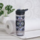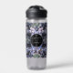 A bold and sophisticated Water Bottle featuring dramatic dusty blue and grey floral illustrations against a stark black background. The crisp white typography and classic layout set an elegant, moody tone. Perfect for a formal evening or a sophisticated wedding.