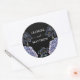A bold and sophisticated Round Sticker featuring dramatic dusty blue and grey floral illustrations against a stark black background. The crisp white typography and classic layout set an elegant, moody tone. Perfect for a formal evening or a sophisticated wedding.