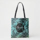 Ein stimmungsvolles, schwarzes, dramatisches Blumenmuster auf einem blau-türkisfarbenen Hintergrund für Kontrast, dann ein schwarzer Kreis in der Mitte mit elegantem Drehbuch, wo man es mit einem Buchstaben, Namen oder Logo personalisieren kann, um es zu einem einzigartigen eigenen zu machen. Teil der Chic Black Floral Collection