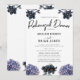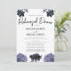 A bold and sophisticated Rehearsal Dinner Invitation featuring dramatic dusty blue and grey floral illustrations against a stark black background. The crisp white typography and classic layout set an elegant, moody tone. Perfect for a formal evening or a sophisticated wedding.