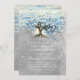 Moody Blue Gray Silver Heart Leaf Tree Wedding Einladung
