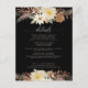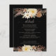 "Moody BOHO Modern Fall Floral Watercolor Schwarz, Bio Herbst Erdfarben über einen reichen schwarzen Hintergrund, mit Kalligraphie Skript Details Gehäuse Karte." Modernes Design mit handgemalten Aquarellfarben und getrocknetem Blattwerk mit Pampas Grass für ein gedämpftes, erdig Bohemisches Hochzeitstil. Schriftzeichen-Typografie mit Schnörkeln. Die Kunst wurde von Audrey Jeanne Roberts, einer international anerkannten Künstlerin und Designerin, erstellt und grafisch gestaltet.