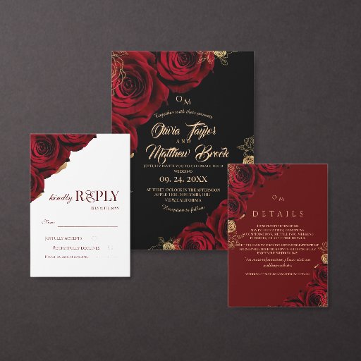 Burgundy Red and Gold Roses WeddingDesignt von Uliana S.