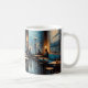 Perfektes Geschenk für den Reise- und Kaffeeliebhaber. Das Gemälde erinnert an eine stimmungsvolle Atmosphäre eines Cafés in North Beach, San Francisco, und verbindet Realismus mit modernistischen Elementen. Die Inneneinrichtung ist in tiefblauen und sanften Grautönen gehalten, was das für San Francisco typische Ambiente widerspiegelt. Das Mobiliar verbindet klassisches Holz mit elegantem, modernem Design und beherbergt Gäste, die in einem entspannten, kontemplativen Staat sitzen. Abstrakte Kunstwerke schmücken die Wände und verleihen dem Ganzen eine raffinierte Atmosphäre. Außerhalb der großen Fenster des Cafés ist das berühmte Viertel North Beach zu sehen, dessen lebhafte Straßen durch Dämmerung und Nebel gemildert werden. Die sanften Schatten werden durch die sanfte Beleuchtung von Deckenleuchten und Straßenbeleuchtung im Freien gestrahlt, was zu einer ruhigen und reflektierenden Stimmung in diesem urbanen Rückzugsort beiträgt.