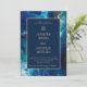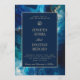 Coastal Moody Blue Marbled Wedding Invitation – Navy & Ocean Blue Elegant Beach Wedding Template with Gold Tone Accents