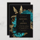 Moody Dark Floral Türkise Gold QR Code Hochzeit Einladung