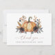 Dieses Design besticht durch einen eleganten Wasserfarbenkürbis, umgeben von dunklen Flora und Blättern. Ideal für Herbst-Brautpartys.