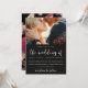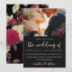 Schöne und elegante Moody Foto Hochzeit Einladung. Diese elegante Einladung ist eine schicke Art, eingeladene Gäste von Ihrer bevorstehenden Hochzeitsfeier lassen. Die hübsche "Hochzeit der" Kalligraphie-Schrift sitzt auf einem dramatischen schwarzen Hintergrund mit dem Foto des Paares, und ein dramatisches botanisches Blume-Muster bedeckt die Rückseite der Karte.
