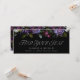 Elegant wedding seating chart header featuring a top border of ivory, burgundy, and purple flowers with lush green leaves and dark berries. The phrase "Find Your Seat" is displayed in white, modern typography with a black background. Personalize the moody purple floral seating chart header card with your names, wedding date, and wedding location. The design coordinates with our Moody Gothic Floral wedding collection.