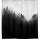 Duschvorhang mit einer scheußlichen Waldlandschaft mit weichen Nebeln und silhoutierten Bäumen, die eine traumhafte und ruhige Atmosphäre im Badezimmer schaffen.