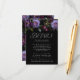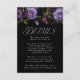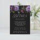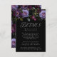 Elegante, blumengeschmückte Hochzeitskarte mit lila, Elfenbein- und Bordeaux-Blume mit üppigem grünem Blattwerk und dunklen Beeren. "Details" wird in eleganter, moderner Typografie dargestellt. Personalisieren Sie die lila Blumenkarte mit Ihren Hochzeitsdetails (Hotelzimmer, Anfahrtsbeschreibung, Hochzeitswebsite, etc.). Das Design koordiniert mit unserer Hochzeitskollektion Moody Gothic Floral.
