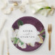 Diese stimmungsvollen lila Blüten Pflaumenkuchen-Papier-Teller sind perfekt für eine moderne Hochzeit. Das elegante Blumendesign besticht durch lila und weiße Tulpenmuster-Blume mit smaragdgrünen Blätter und goldenen Blattakzenten. Diese Teller sind ideal für den Kuchen- oder Desserttisch. Personalisieren Sie sie mit den Namen der Braut und des Bräutigams.
