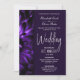 Eine elegante, lila blumengeschmückte Hochzeitseinladung, die zum Anzug von Paaren gedacht ist, die an einem Ort Versprechungen austauschen und mit einem Abendessen, Tanzen und Toasts mit Freunden und Lieben am anderen Abend feiern wollen.