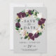Diese lila graue Ankündigung Datum freihalten ist perfekt für eine moderne Hochzeit. Das elegante Blumendesign besticht durch lila und weiße Tulpenmuster-Blume mit smaragdgrünen Blätter und goldenen Blattakzenten.