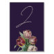 Ein schönes Aquarellmoody lila und bordeauxrot Tulpen Hochzeitsdesign. Ein einzigartiges Design, das die Tulpenbotanikale mit dem rustikalen beige und lila Hintergrund verwendet. Ein modernes Blumendesign mit klangvollen lila Elementen. Ein elegantes und modernes Tulpe Hochzeitsdesign in Tischnummer. Auch die passenden Hochzeitseinladungen und andere Schreibwaren sind verfügbar. Passen Sie die Anzahl an und erwerben Sie jede Tabellennummer individuell, je nachdem, wie viele Tischnummern Sie benötigen.
