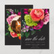 Moody Luxe Floral Vibrant Pink Black Photo Wedding Save The Date