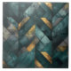 This moody geometric ceramic tile design features a striking mosaic in shades from sea green to deep teal, accented with touches of metallic gold for a luxurious, contemporary feel. The pattern’s modern herringbone-inspired layout gives it a sense of movement and depth, perfect for adding drama and sophistication to any space. Ideal for statement walls, kitchen backsplashes, fireplace surrounds, or as an artistic accent piece, this tile blends modern elegance with timeless appeal. Available in both 4.25" and 6" square sizes to suit your project. Note: design contains generative content.