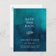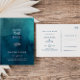 Diese moodooozeanische Aquarell-Save the Date Postkarte ist perfekt für Ihre einfache tropische Hochzeit. Es ist mit minimalistisch weißen tropischen Blätter und einem atemberaubend dunkelblau-grünen Hintergrund gestaltet.