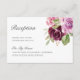 Moody blumengeschmückte Hochzeitskarte mit einem Strauß von Aquarellfarben in Pflaume, lila und rosa in der oberen rechten Ecke. Der Titel "Empfang" und die Zeile "Veranstaltungsort" sind in Skripten enthalten. Die Rückseite ist eine tiefe Pflaumenfarbe und kann in jede gewünschte Farbe geändert werden. Diese Karten sind eine perfekte Ergänzung zu Ihrer Suite, wenn Ihr Empfang an einem anderen Ort als Ihrer Zeremonie gehalten wird.