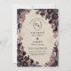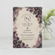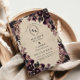 Machen Sie eine kühne und unvergessliche Aussage mit diesem dunkelromantischen Lila Blumendesign. Reiche, stimmungsvolle Blüten in tiefen violetten und schwarzen Tönen umrahmen einen Pergament-Hintergrund und schaffen einen eleganten und dramatischen Stil, der perfekt für eine anspruchsvolle, gotisch inspiriert Hochzeitsfeier geeignet ist.