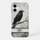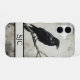 Schaffen Sie mit dieser personalisierten Monogramm-Handyhülle den Ton für eine mysteriöse Dark-Academia-Ästhetik. Sie zeigt eine detaillierte schwarze Krähenillustration, die auf einem rustikalen Ast sitzt und in einer auffallenden Monochrom-Palette mit Vintage-Tintenstrukturen dargestellt wird. Dies ist die perfekte Möglichkeit, Ihre alltägliche Technik aufzuwerten oder ein aufmerksames Geschenk für einen Liebhaber gothischer Kunst zu überreichen.