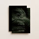 Moody Tropics Fotografie, Hochzeitseinladung. Moderner, dunkler und moody tropischer Palmenfrontenfotografie Hintergrund und koordinieren schwarze Farbunterlage.